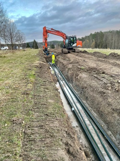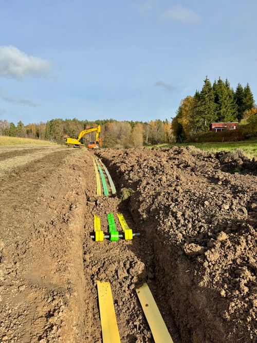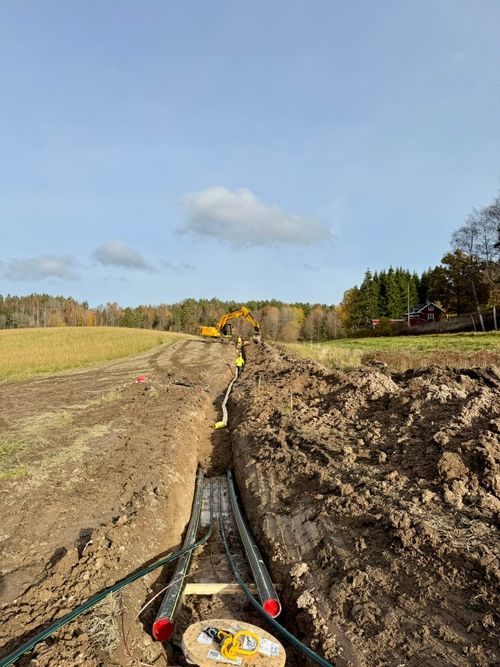 Projektet innebär förläggning av dubbla högspänningskablar i kabelskyddsrör med tillhörande fiberanslutningar. I projektet ingår både jord-och bergschakt och vi passerar 20 vägar längst med sträckan. För att minimera störning för trafiken passerar vi vägarna med styrd borrning.